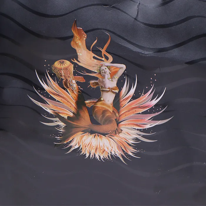 Varem seostati metallist läiget ja siledat tekstuuri sageli kuuma fooliumiga tembeldamisega. See rõivaste ostukott kasutab aga uuenduslikult trükkimise ja reljeeftrükkimise protsessi, asendades traditsioonilise kuuma fooliumiga stantsimise, et luua uus visuaalne ja kombatav kogemus. Trükkimine ja reljeeftrükk võimaldavad rohkem värvide gradatsioone. Kliendid saavad vabalt kohandada värve, matte või läikivaid viimistlusi, läbipaistvaid või gradientseid efekte, erinevalt traditsioonilisest kuuma fooliumiga stantsimisest, mis piirdub konkreetse kulla, hõbeda, vase või värvilise fooliumiga. Trükkimine ja reljeef võimaldab mitmevärvilisi kombinatsioone. Reljeeftrükk annab tekstile, logodele või mustritele ka kolmemõõtmelise efekti, suurendades pakendi interaktiivsust.