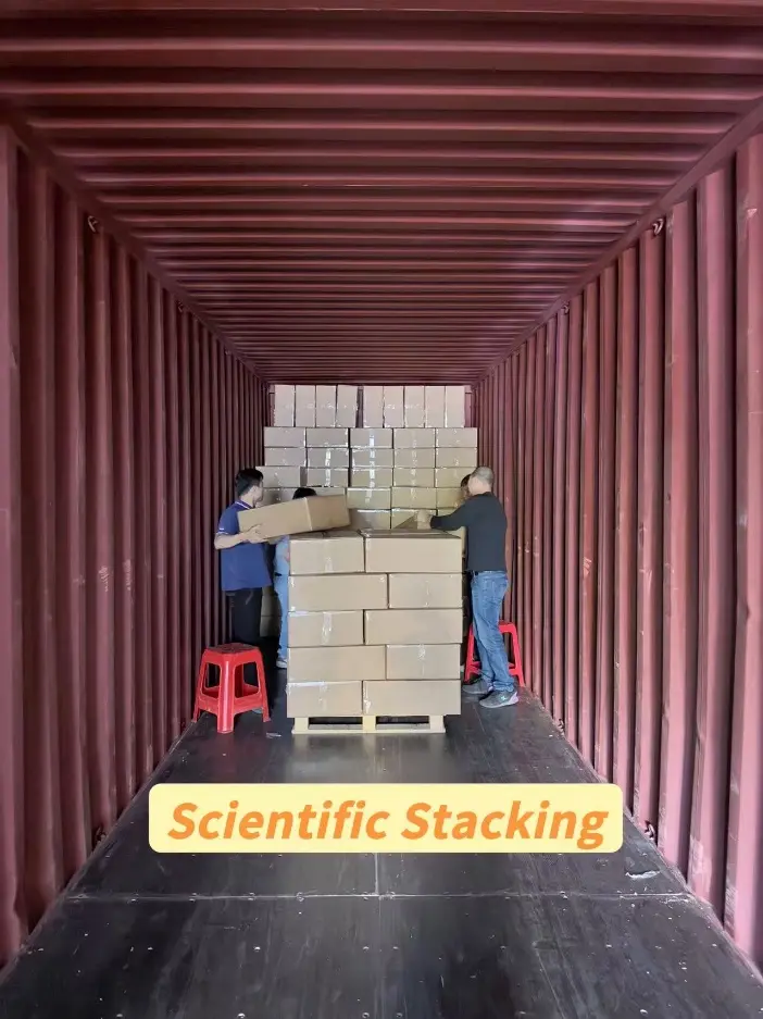 Konteinerlaadimisarvutuste osas on meie tugevuseks tervikliku konteineri laadimisplaani koostamine ja testimine. Selle konteineri karbi koguse arvutamiseks võtame arvesse kõiki tegureid, nagu konteineri suurus ja tüüp, karbi suurus ja paigutusmeetod. On tõestatud, et meie hinnangud konteinerite laadimise kohta on väga täpsed. Samuti kavandame hoolikalt konteineri laadimise paigutuse, et juhendada oma töötajaid laadima, mitu rida ja veerge, õiget konteineri laadimise järjekorda ning teaduslikke paigutus- ja virnastamismeetodeid kaupade kaitsmiseks. Kuna kaubaks on kreempaberkarbid, ei tohi kvaliteetsetel nahahooldustoodete pakendikarpidel olla kortse ega kortse. Seega pöörame kvaliteedi säilitamiseks rohkem tähelepanu karpide paigutamisele virnastatud kihtidena.